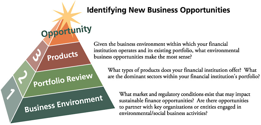 Environmental and social risk management can help financial institutions identify market demands for new products that address environmental and social sustainability and to create new products accordingly.